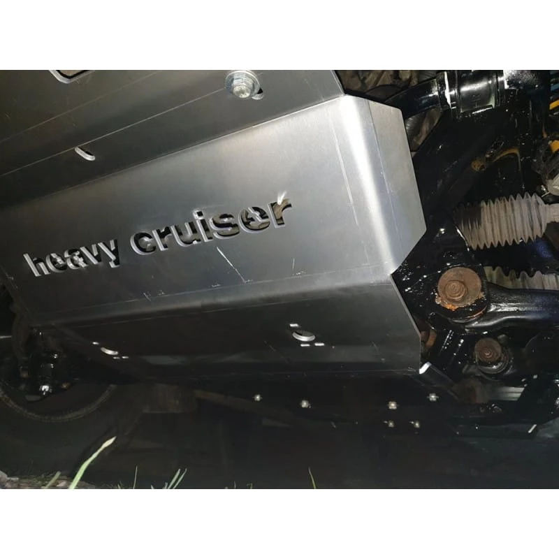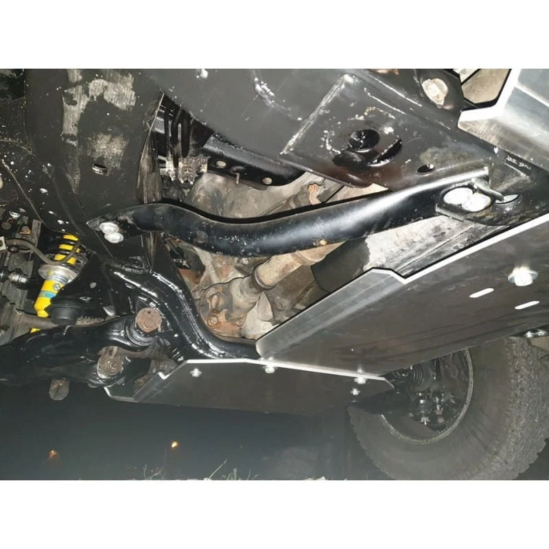 Osłona zabezpiecza chłodnice, miskę olejową silnika i delikatny przedni most, zapewniając jednocześnie niską masę całego zestawu. Wykonana z blachy aluminiowej konstrukcyjnej o grubości 6 mm, łączy doskonałą odporność z lekkością, co przekłada się na mniejsze obciążenie pojazdu. Wspawane dystanse montażowe zwiększają sztywność konstrukcji, a system otworów wentylacyjnych ułatwia chłodzenie i samoczyszczenie osłony z błota.