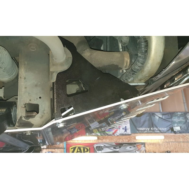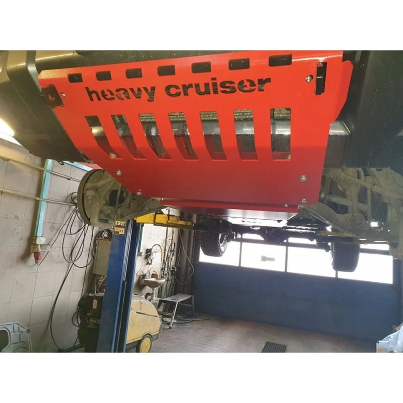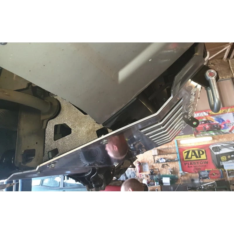 Osłona mocowana jest w fabryczne punkty montażowe pojazdu, co eliminuje konieczność wiercenia lub spawania. Została wykonana z blachy aluminiowej konstrukcyjnej o grubości 6 mm, co gwarantuje wysoką wytrzymałość przy jednoczesnym zachowaniu niskiej masy.