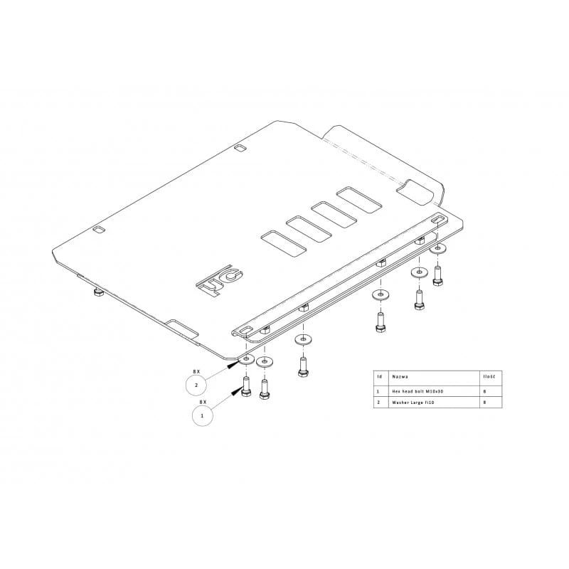 Wykonana z lekkiej, a jednocześnie wytrzymałej blachy aluminiowej konstrukcyjnej o grubości 6 mm, osłona zabezpiecza elementy narażone na kontakt z przeszkodami terenowymi — kamieniami, koleinami, wystającymi korzeniami czy twardymi nierównościami.