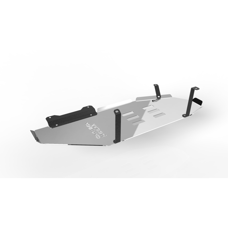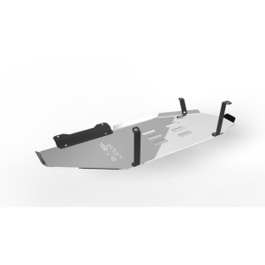 Wykonana z wytrzymałej aluminiowej blachy konstrukcyjnej o grubości 6 mm, osłona charakteryzuje się bardzo dobrą odpornością na uszkodzenia oraz niską masą, co pozwala ograniczyć dodatkowe obciążenie pojazdu. Montowana jest w czterech punktach ramy pojazdu z wykorzystaniem fabrycznych otworów – bez konieczności wiercenia czy spawania. Otwory odprowadzające wodę, błoto i zanieczyszczenia ułatwiają czyszczenie oraz wpływają na lepszą pracę osłony w trudnych warunkach.