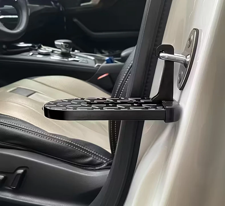 Uniwersalny podest samochodowy wykonany z aluminium i wzmocnionego tworzywa sztucznego to praktyczne rozwiązanie dla każdego kierowcy, który chce w łatwy sposób uzyskać dostęp do dachu pojazdu. Dzięki przemyślanej konstrukcji stopień montuje się bezpośrednio na elemencie zamka drzwi – bez potrzeby wiercenia czy innych inwazyjnych działań. Specjalna gumowa osłona chroni karoserię przed zarysowaniami.