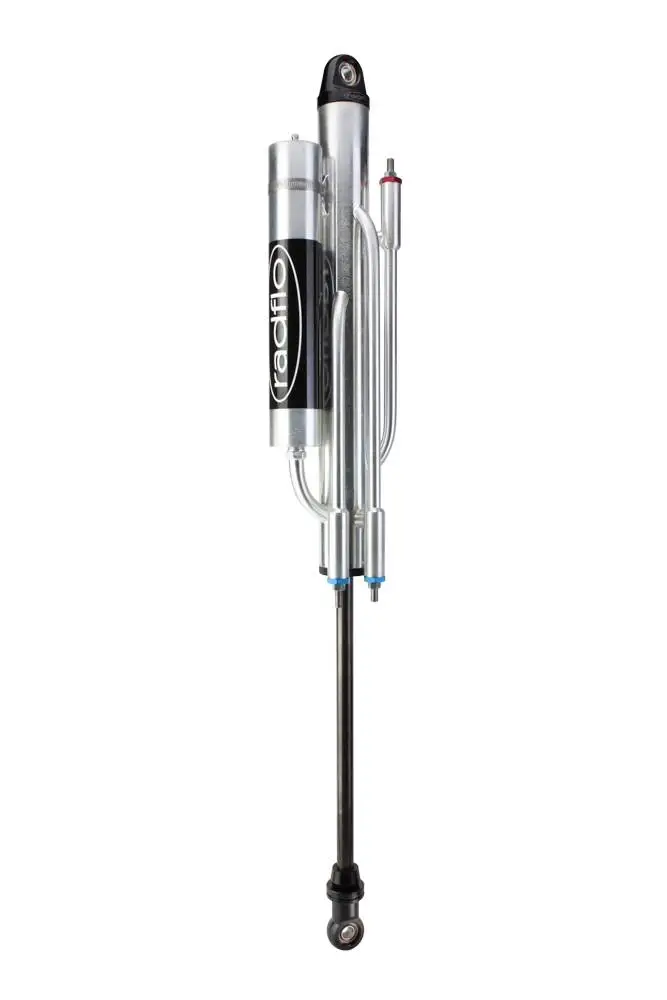 Radflo 2.5" Bypass 4 Tube z 16-calowym skokiem i zintegrowanym zbiornikiem bocznym (Piggy Back Reservoir) to najwyższy poziom amortyzacji dostępny w ofercie Radflo dla ekstremalnych zastosowań off-road. Cztery niezależne rurki bypass pozwalają na pełne dostrojenie charakterystyki tłumienia – od miękkiej reakcji w początkowym ugięciu po twarde hamowanie końcowego zakresu pracy.