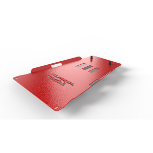 Czerwona, stalowa osłona skrzyni biegów do Lexus LX570 J200 2008–2014 to rozbudowany i wytrzymały element ochrony podwozia, zaprojektowany z myślą o intensywnej jeździe terenowej. Chroni całą powierzchnię skrzyni biegów przed uderzeniami o przeszkody, kamienie czy wystające elementy terenu, zapewniając bezpieczną pracę układu napędowego nawet w bardzo trudnych warunkach.
