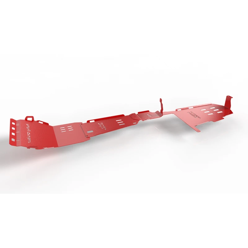Czerwony komplet osłon podwozia OFFROAD to pełne, zaawansowane zabezpieczenie terenowe, stworzone dla kierowców wymagających maksymalnej ochrony podczas jazdy w trudnych warunkach. Zestaw chroni wszystkie kluczowe elementy pojazdu: chłodnice, przedni most, silnik, przekładnię kierowniczą, skrzynię biegów, reduktor oraz zbiornik paliwa.