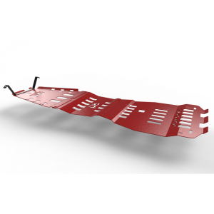 Komplet osłon układu napędowego SPORT w kolorze czerwonym to pełny zestaw osłon podwozia z najlżejszej linii HC Sport, zaprojektowany specjalnie dla modeli Suzuki Grand Vitara II (2005–2014). Zestaw obejmuje trzy kluczowe elementy ochronne – osłonę chłodnic, silnika i przedniego mostu, osłonę skrzyni biegów oraz osłonę reduktora – zapewniając kompleksową ochronę wszystkich newralgicznych części napędu podczas jazdy w terenie.