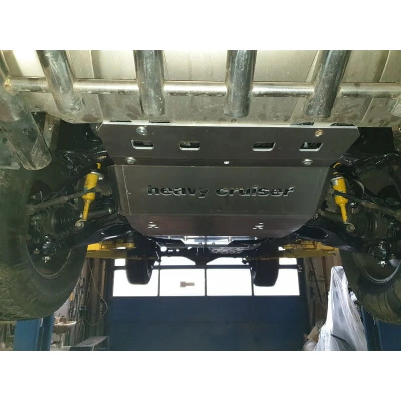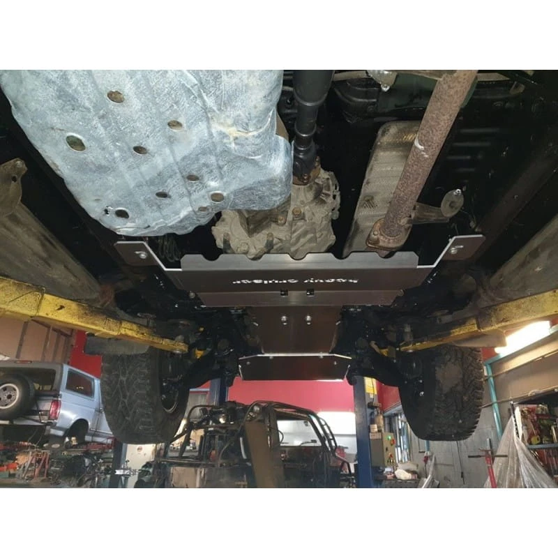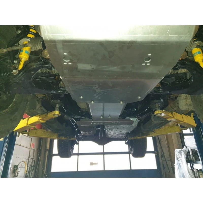 Zestaw skutecznie zabezpiecza wszystkie kluczowe i narażone elementy podwozia — chłodnice, przedni most, silnik, skrzynię biegów, reduktor oraz zbiornik paliwa — przed uszkodzeniami mechanicznymi, błotem, kamieniami i innymi przeszkodami terenowymi.