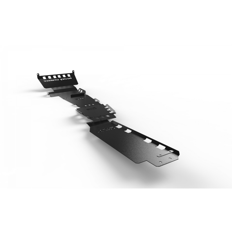 Komplet osłon podwozia do Renault Alaskan 2016– to najbardziej rozbudowany i skuteczny system ochrony pojazdu terenowego, obejmujący wszystkie kluczowe elementy zespołu napędowego i paliwowego. Wykonany z 4-milimetrowej stali konstrukcyjnej i malowany proszkowo w technologii dwuwarstwowej, zapewnia maksymalną trwałość, odporność i bezpieczeństwo. To idealne rozwiązanie dla kierowców poszukujących pełnej, profesjonalnej ochrony podwozia swojego Renault Alaskan w każdych warunkach terenowych.