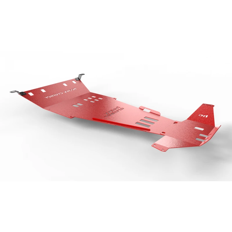 Czerwony komplet osłon układu napędowego STANDARD do Porsche Cayenne 955 (2002–2006) to solidny, stalowy zestaw trzech osłon o łącznej wadze około 32,3 kg, oferujący pełną i stabilną ochronę chłodnic, silnika, mostu przedniego, skrzyni biegów oraz reduktora. Liczne otwory wentylacyjne, odporna powłoka antykorozyjna oraz możliwość montażu w oryginalne punkty sprawiają, że jest to idealny wybór dla kierowców poszukujących maksymalnej ochrony podczas jazdy w terenie.