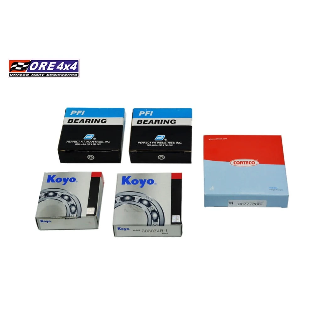 Zestaw zawiera dwa łożyska dyferecjału, dwa łożyska wałka atakującego oraz uszczelniacz flanszy na wałku atakującym.