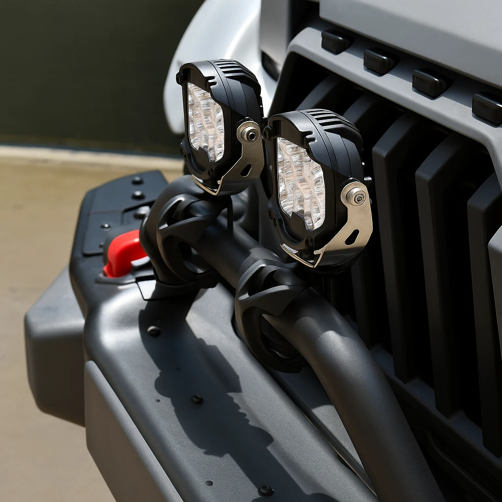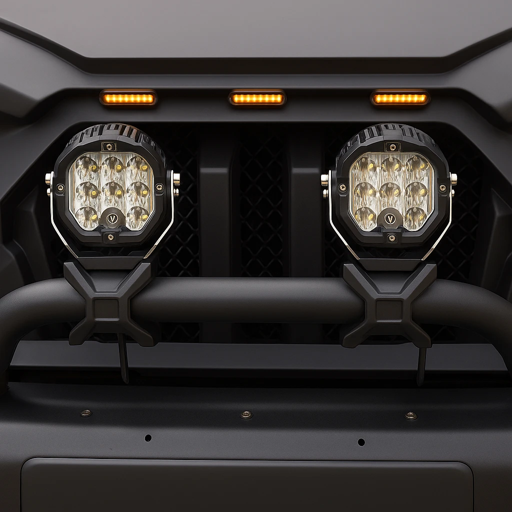 Solidna konstrukcja o stopniu ochrony IP67 jest odporna na wodę, kurz i wstrząsy. Przezroczyste klosze z niezniszczalnego poliwęglanu oraz radiatorowe pokrywy w kolorze czarnego satynowego lakieru proszkowego gwarantują trwałość i odporność w trudnych warunkach. Lampy przeznaczone są wyłącznie do użytku terenowego – nie posiadają homologacji drogowej.