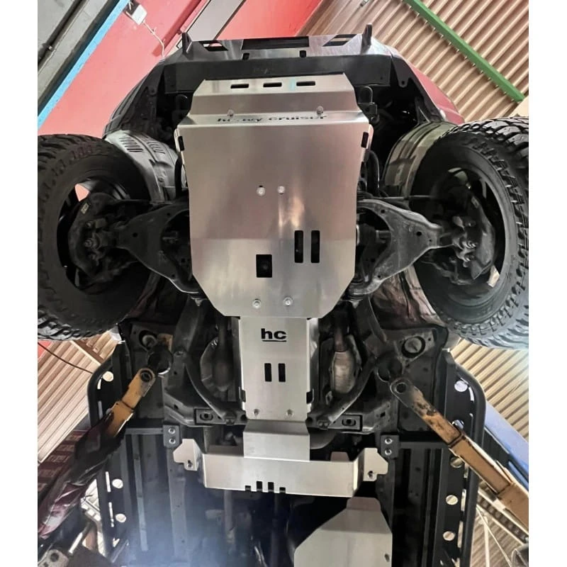 Aluminiowa osłona chłodnic, silnika i przedniego mostu do Toyota 4Runner N280 (2014–2024) to najważniejszy element ochrony podwozia dla pojazdów użytkowanych w trudnym terenie. Zapewnia kompleksową ochronę najbardziej narażonych podzespołów, takich jak chłodnice, miska olejowa, przedni most oraz elementy osprzętu, które w warunkach offroadowych są szczególnie podatne na uszkodzenia.