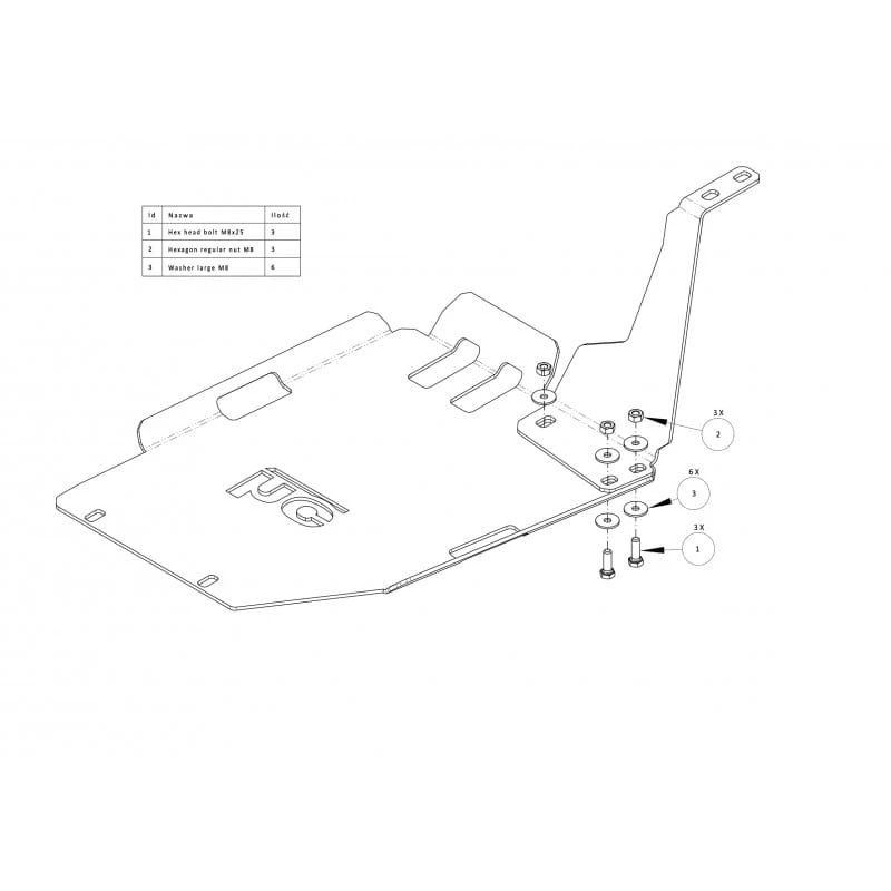 Montowana jest w fabryczne otwory ramy pojazdu, bez konieczności wiercenia lub modyfikacji konstrukcji auta. Dodatkowe otwory w osłonie zapewniają prawidłowe chłodzenie reduktora, a także ułatwiają usuwanie zbierającego się błota. Produkt stanowi część systemu Heavy Cruiser (HC) i umożliwia stworzenie kompletnego zestawu ochrony podwozia.