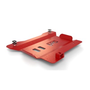 Czerwona stalowa osłona silnika i przedniego mostu to drugi element rozbudowanego systemu osłon podwozia przeznaczonego do Volkswagen Amarok 2023–. Jej zadaniem jest skuteczna ochrona miski olejowej silnika oraz przedniego mostu napędowego przed uszkodzeniami mechanicznymi występującymi podczas jazdy w wymagającym terenie.