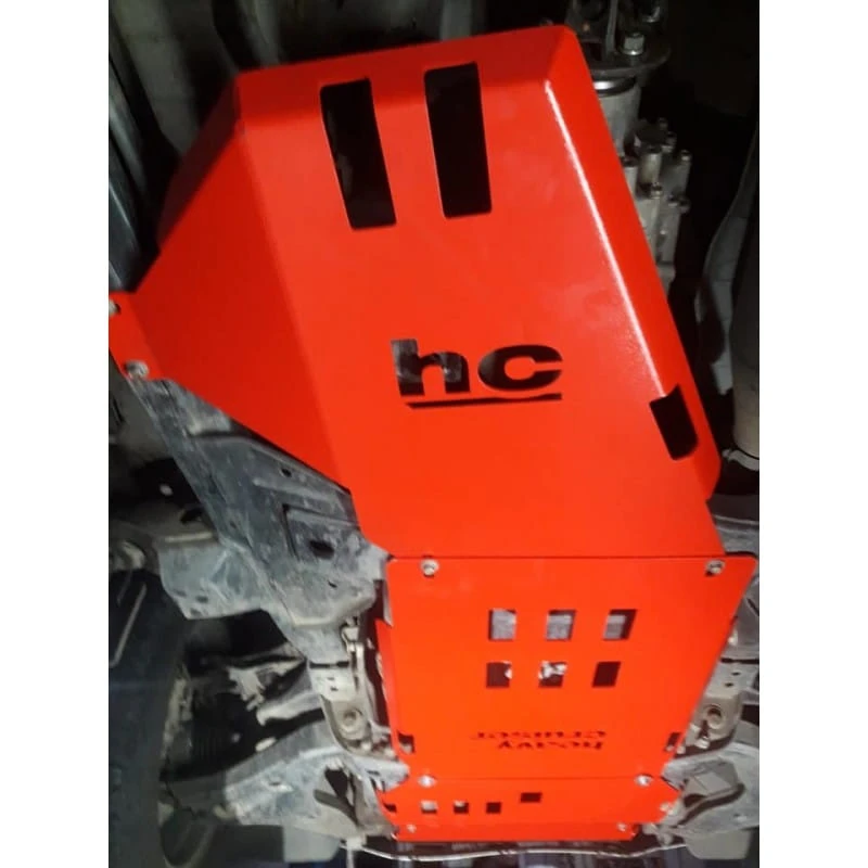 Stalowa osłona skrzyni biegów Mitsubishi L200 Triton (2019–) to trwała, sztywna i skuteczna ochrona kluczowego elementu układu napędowego. W połączeniu z pozostałymi osłonami HC stanowi doskonały fundament pod kompletny zestaw ochrony podwozia, idealny dla użytkowników ceniących niezawodność w trudnym terenie.