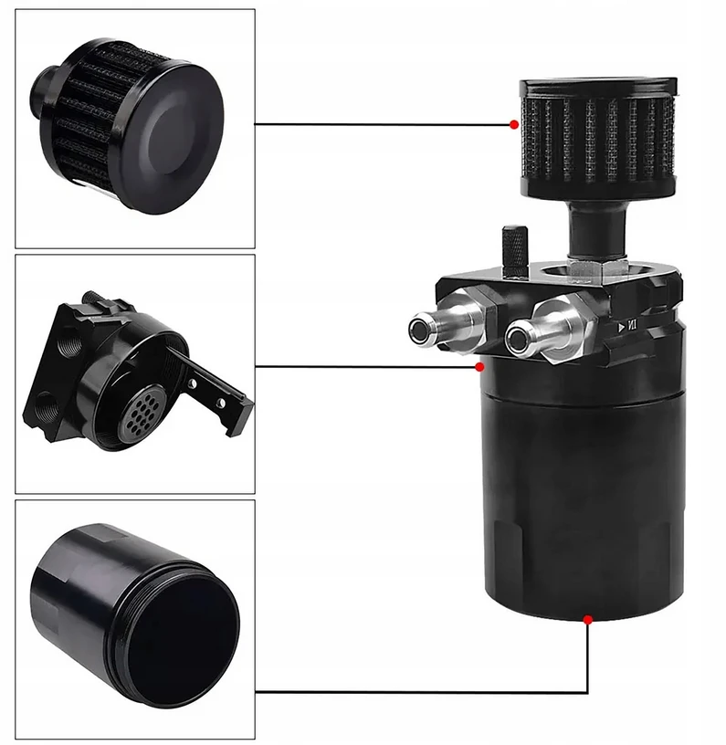 Oil Catch Tank 300 ml to niezbędny element dla osób, które chcą zadbać o kondycję silnika, szczególnie w pojazdach terenowych i tuningowanych. Skutecznie eliminuje zanieczyszczenia z układu dolotowego, poprawia osiągi i chroni jednostkę napędową przed przedwczesnym zużyciem.