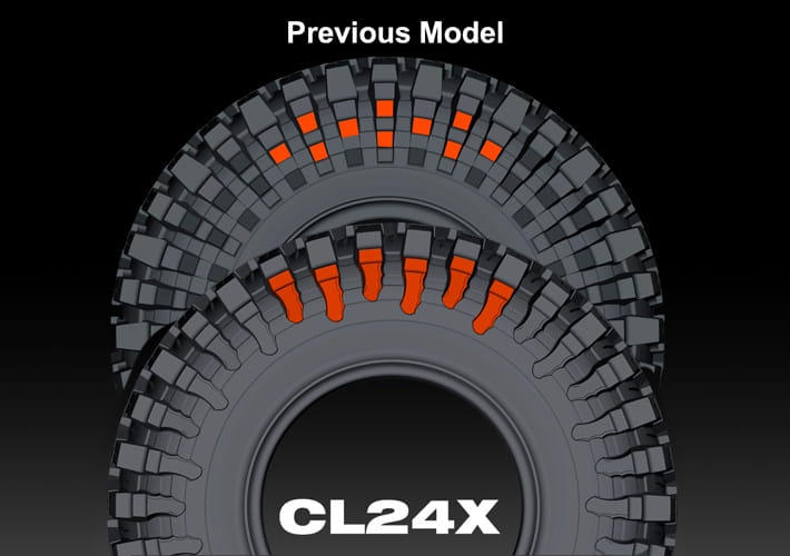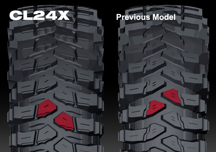 Konstrukcja 6PR (6-warstwowa) zapewnia odporność na uszkodzenia i przeciążenia. Indeks nośności 119K (1360 kg na oponę, do 110 km/h) potwierdza, że model ten jest przeznaczony do cięższych pojazdów terenowych i wyprawowych. Solidna budowa, wysoka nośność i bezdętkowa technologia TL (Tubeless) czynią CL24X niezawodnym wyborem dla kierowców wymagających maksymalnej wytrzymałości i trakcji.