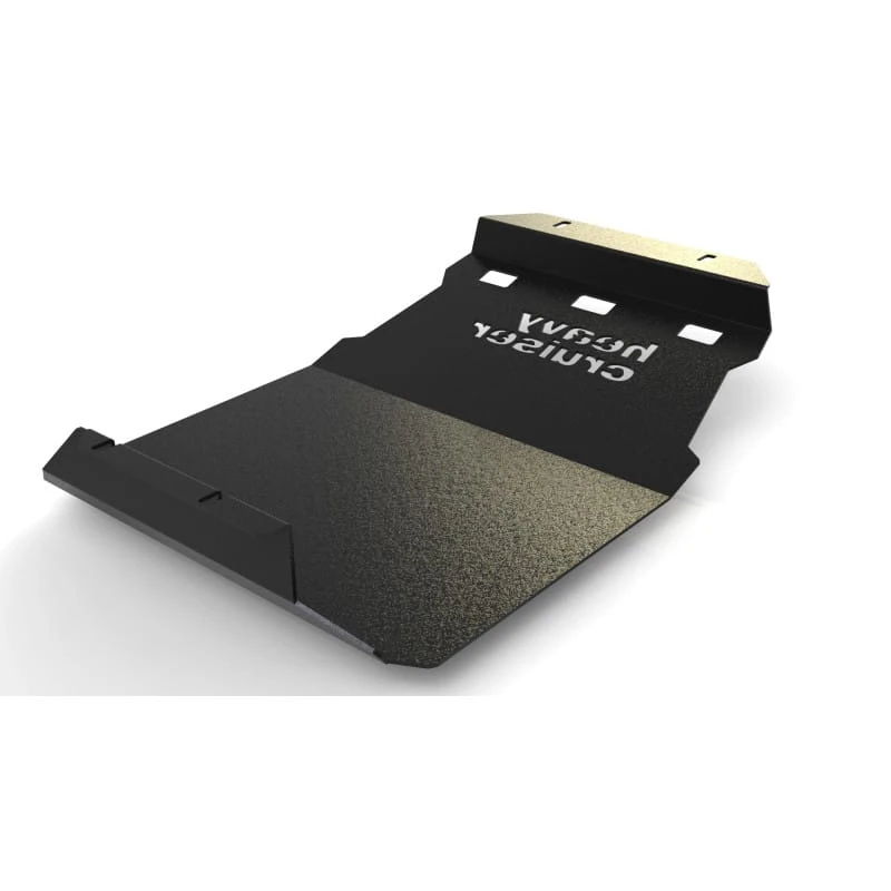 Osłona montowana jest w fabryczne otwory ramy pojazdu, dzięki czemu jej instalacja nie wymaga wiercenia ani spawania. Stalowa płyta 4 mm, śrutowana i pokryta dwuwarstwową powłoką proszkową, zapewnia wysoką odporność mechaniczną oraz antykorozyjną.