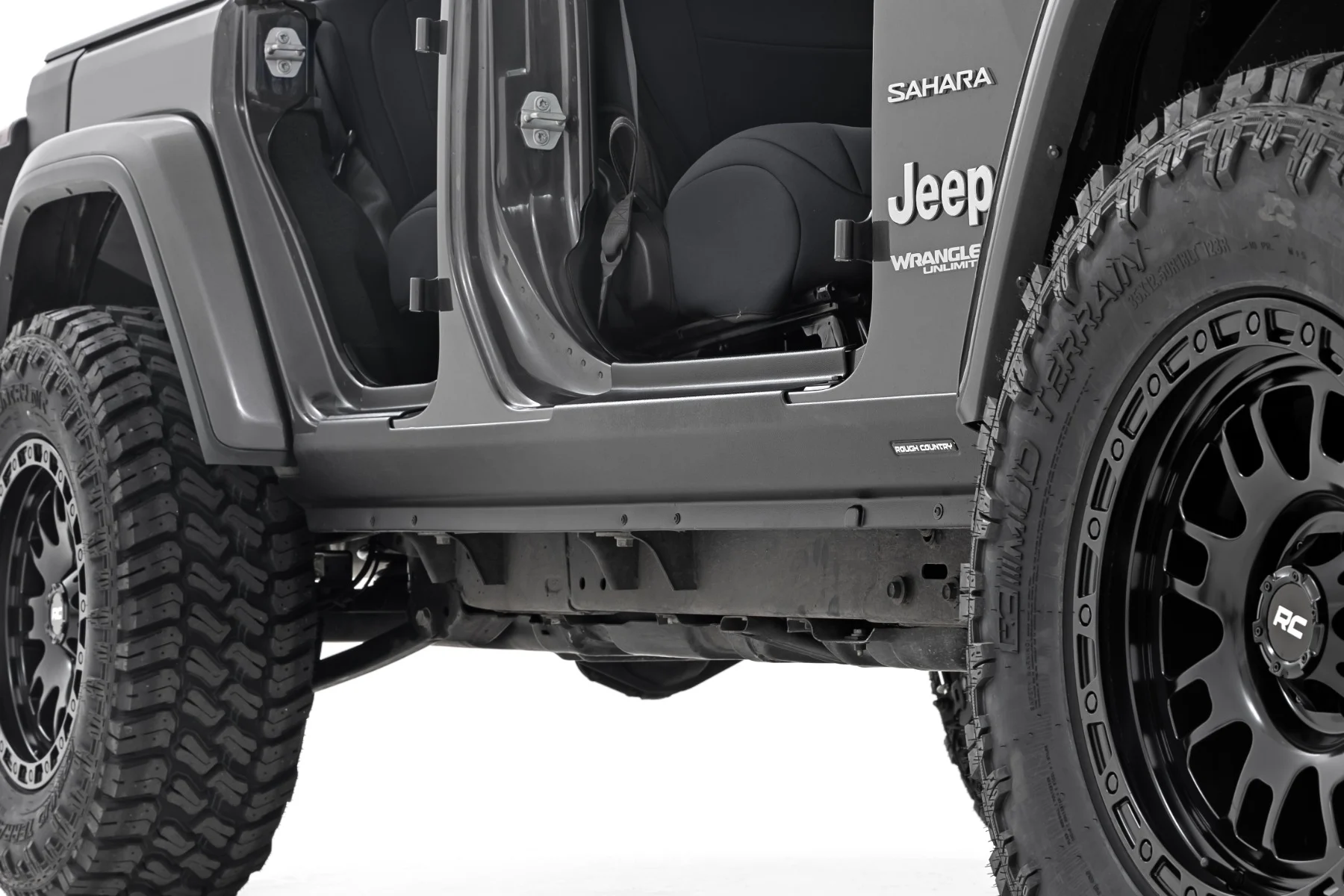 Osłony progowe Rough Country – Rocker Sill Plates | Jeep Wrangler Unlimited 4WD (2018–2025)