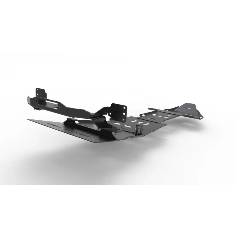 Zestaw obejmuje osłony chłodnic i silnika, miski olejowej oraz przedniego mostu, skrzyni biegów i reduktora. Wszystkie płyty wykonano z wytrzymałej stali konstrukcyjnej, zabezpieczonej w technologii dwuwarstwowego malowania proszkowego ze strukturą i podkładem antykorozyjnym klasy 5. Dodatkowe otwory i wycięcia poprawiają chłodzenie podzespołów oraz ułatwiają odpływ błota, dzięki czemu zestaw sprawdza się w każdych warunkach terenowych.