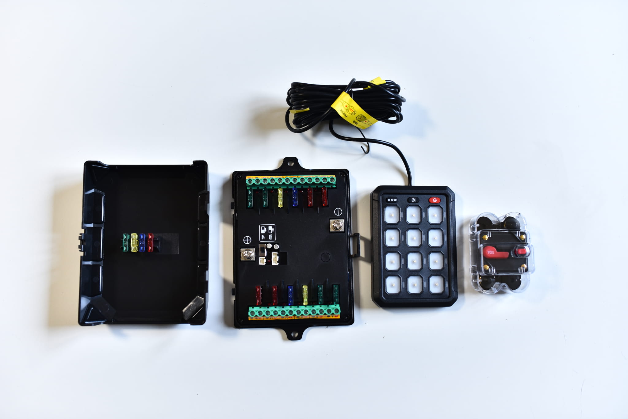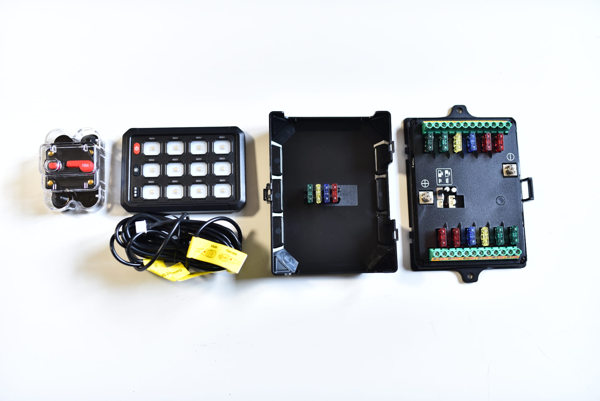 Panel 12-gang z podświetleniem RGB i maksymalnym obciążeniem 100 A to profesjonalny system sterowania osprzętem elektrycznym, który łączy funkcjonalność, bezpieczeństwo i nowoczesny wygląd. Dzięki możliwości podłączenia aż 12 niezależnych obwodów oraz personalizacji kolorów podświetlenia, stanowi doskonałe rozwiązanie dla pojazdów off-roadowych, wyprawowych, kempingowych oraz wszystkich, które wymagają uporządkowanego i niezawodnego zarządzania energią.