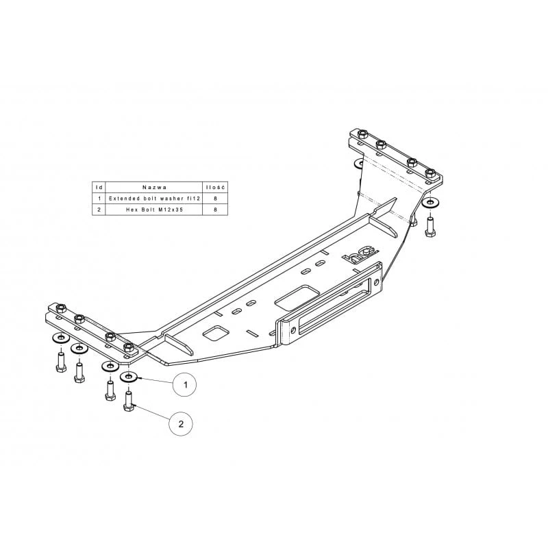 Płyta przykręcana jest bezpośrednio do podłużnic ramy pojazdu, co zapewnia wyjątkową sztywność oraz bezpieczeństwo użytkowania. Konstrukcja została wykonana jako jednoczęściowa, spawana całość, pozbawiona dokręcanych elementów, co zwiększa wytrzymałość i redukuje wagę.