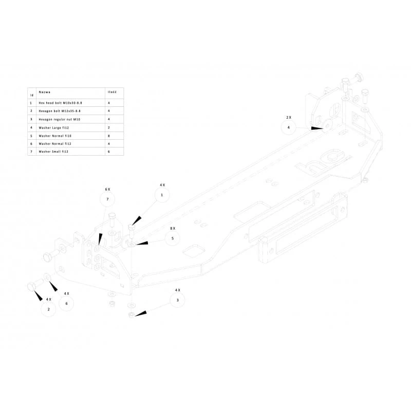 Montaż: do fabrycznych otworów ramy pojazdu – bez wiercenia i spawania