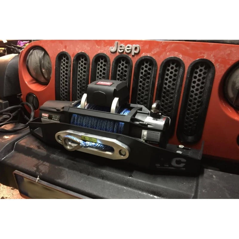 Płyta montażowa wyciągarki przeznaczona do Jeep Wrangler JK (2007–2018) umożliwia instalację wyciągarki nad oryginalnym zderzakiem, bez konieczności jego cięcia czy modyfikacji.