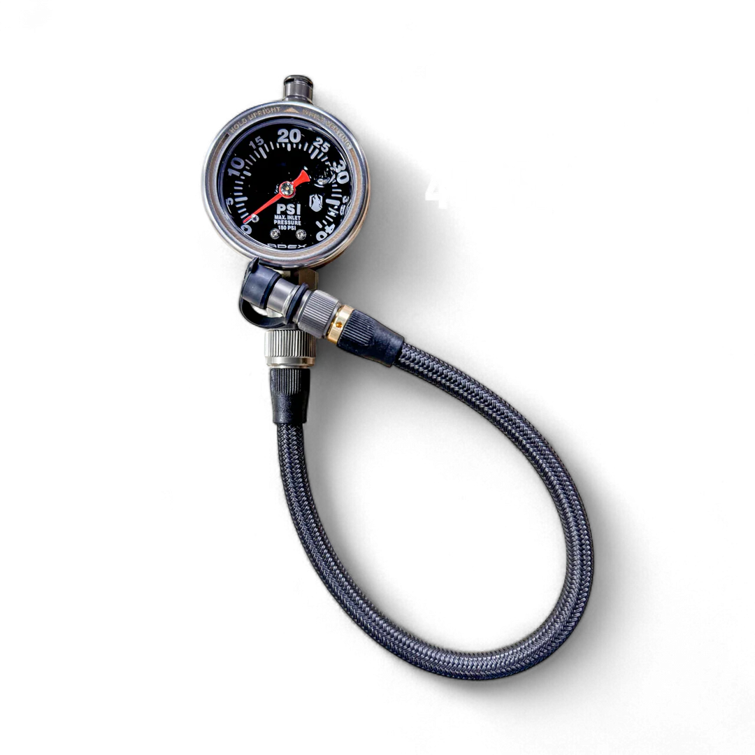 To wysokiej klasy narzędzie przeznaczone do ekstremalnie dokładnego pomiaru ciśnienia w niskim zakresie (0–40 PSI) — idealne do precyzyjnego dostrajania ciśnienia w oponach terenowych, szczególnie o indeksie nośności C i D. Duża, czytelna tarcza pozwala na szybki i wyraźny odczyt.