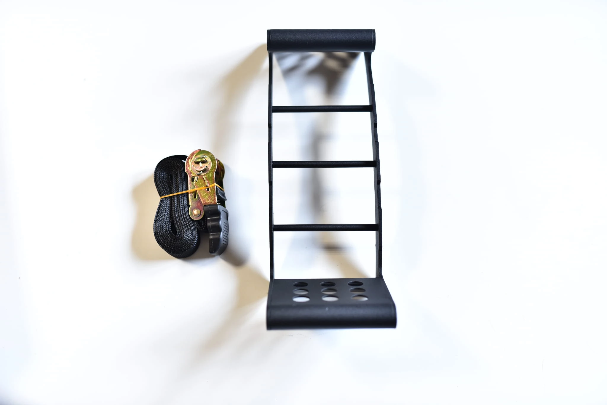 Elementy zestawu: schodki + pas mocujący + klamra zapadkowa