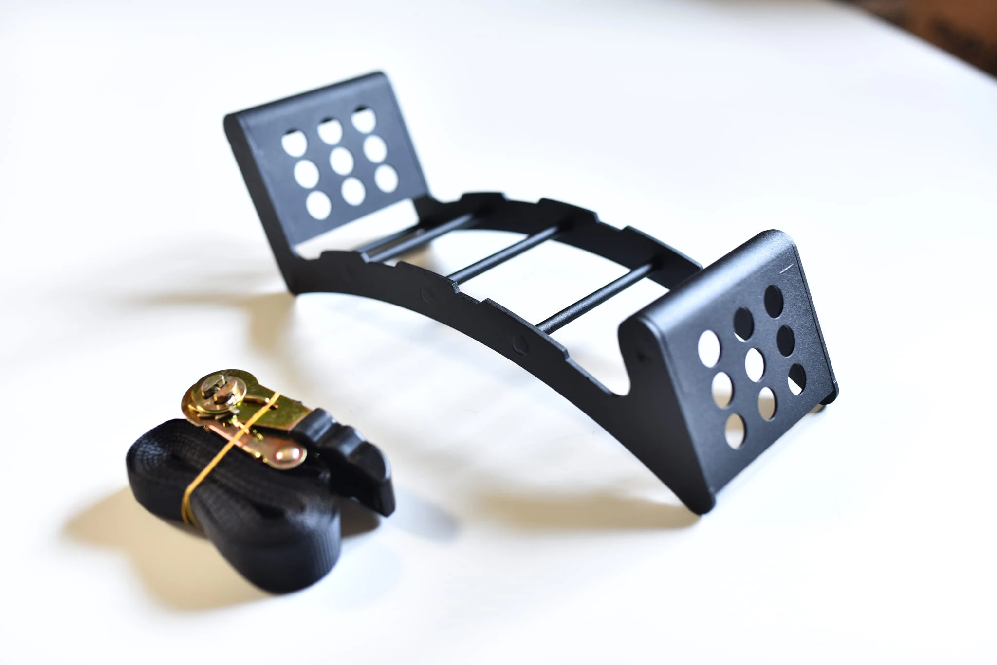 Stabilne mocowanie dzięki pasowi z klamrą zapadkową.