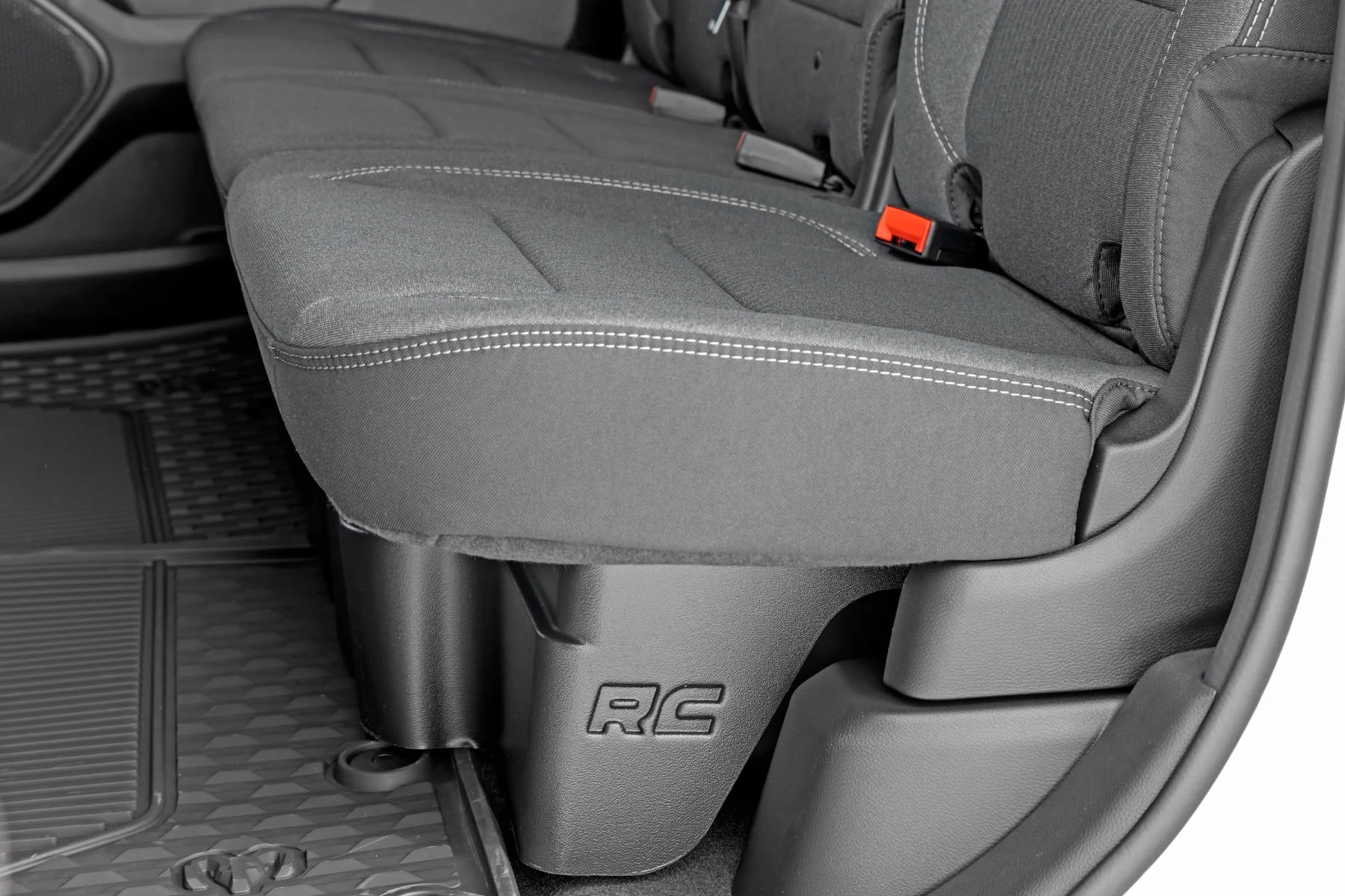Schowek pod tylną kanapę Rough Country to praktyczne rozwiązanie pozwalające maksymalnie wykorzystać przestrzeń wewnątrz kabiny. Zaprojektowany specjalnie do Ram 1500, idealnie wpasowuje się pod tylne siedzenia, oferując dodatkowe miejsce do przechowywania bez ingerencji w komfort pasażerów.