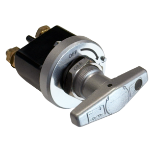 Wyłącznik odcinający zasilanie akumulatora (kill switch) o obciążalności ciągłej 500A, przeznaczony do instalacji 12–36VDC. Produkt wykonany z odlewu ciśnieniowego i posrebrzanej miedzi zapewniającej wysoką przewodność elektryczną.