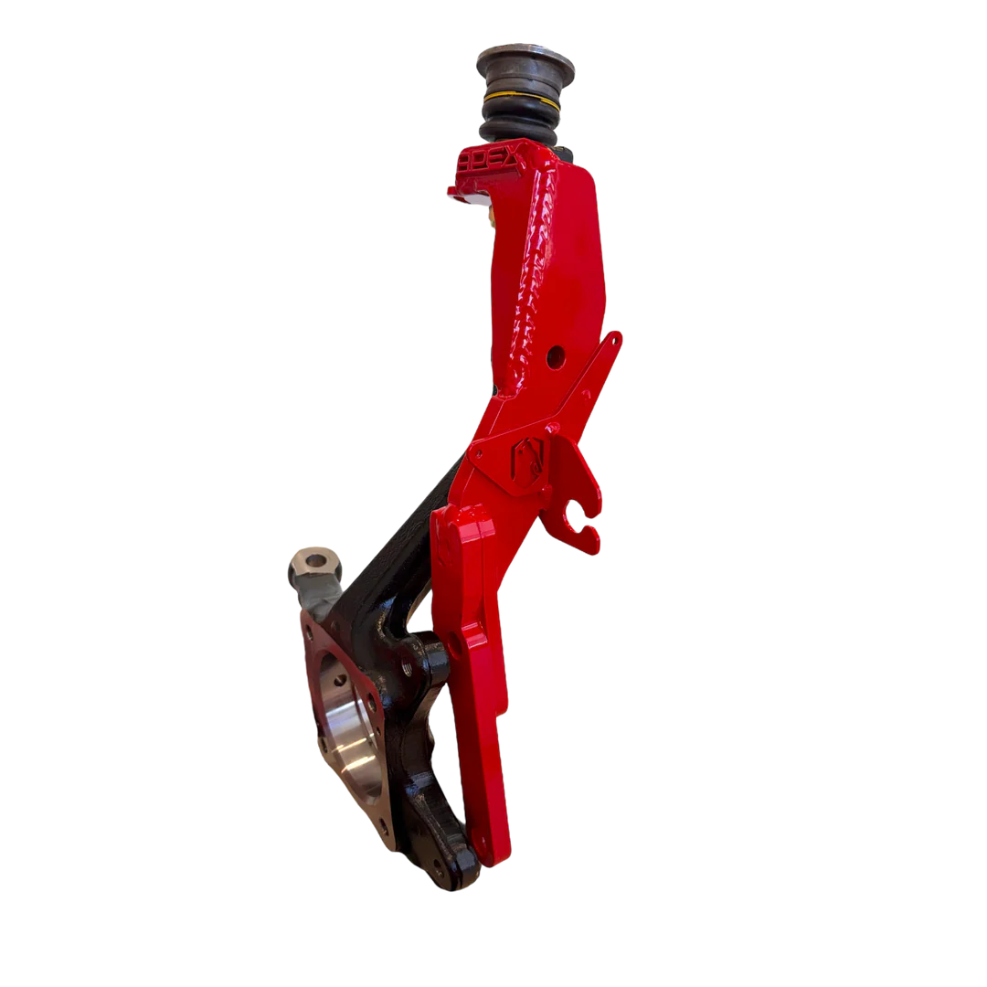 APEX Bolt-On Spindle Gusset to wzmocnienie fabrycznych zwrotnic, które znacząco zwiększa ich wytrzymałość i sztywność. W odróżnieniu od klasycznych gussetów wymagających spawania, rozwiązanie APEX jest w pełni śrubowe (100% bolt-on), dzięki czemu montaż można przeprowadzić nawet we własnym garażu w ciągu kilku godzin. Konstrukcja z płyty stalowej o grubości 0,500” zapewnia wielokrotnie większą odporność niż tradycyjne gussety spawane, a brak ingerencji cieplnej eliminuje ryzyko kruchego pękania spowodowanego nagrzewaniem podczas spawania.