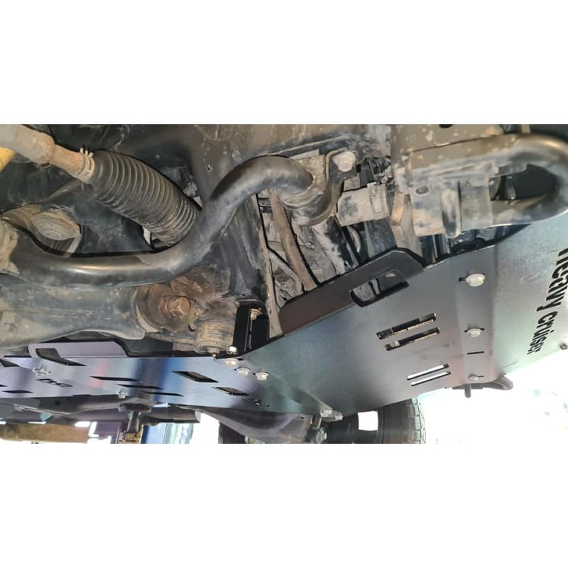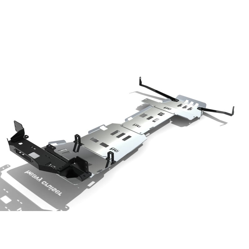 Pakiet Offroad do Toyota Sequoia 2007–2014 to kompletny zestaw osłon podwozia oraz dedykowana płyta montażowa wyciągarki – rozwiązanie stworzone z myślą o kierowcach, którzy chcą w pełni zabezpieczyć swój pojazd podczas jazdy w terenie. Zestaw obejmuje cztery rozbudowane płyty ochronne oraz stalową płytę montażową wyciągarki, tworząc trwałą, lekką i odporną konstrukcję chroniącą newralgiczne elementy napędu i podwozia przed uszkodzeniami.