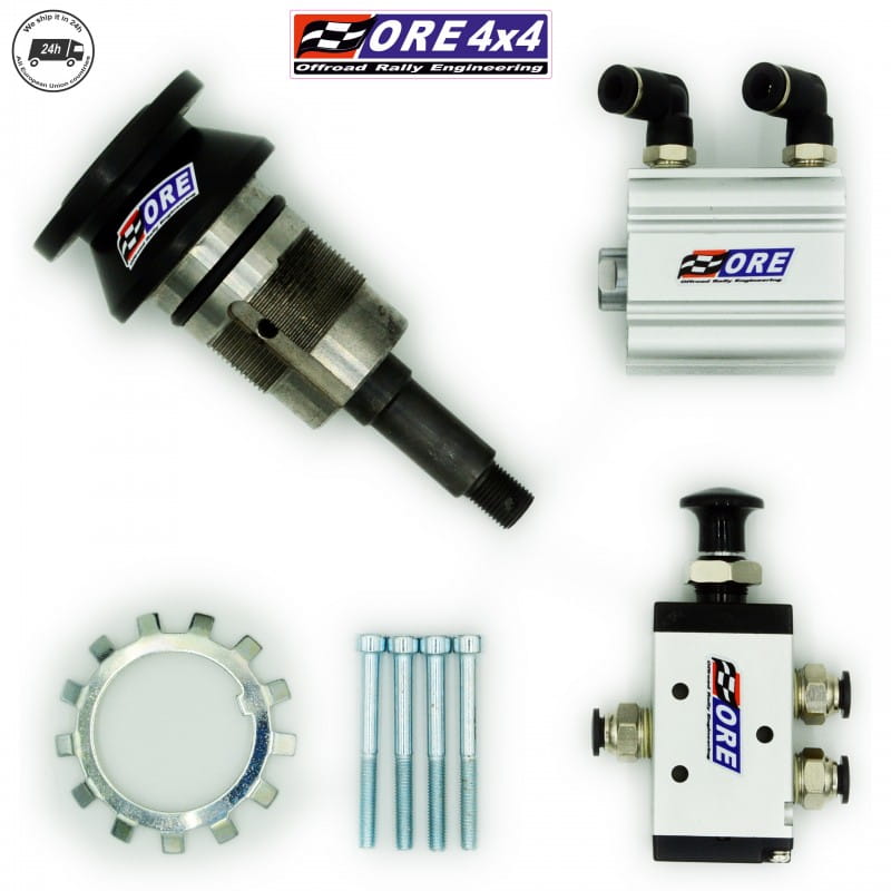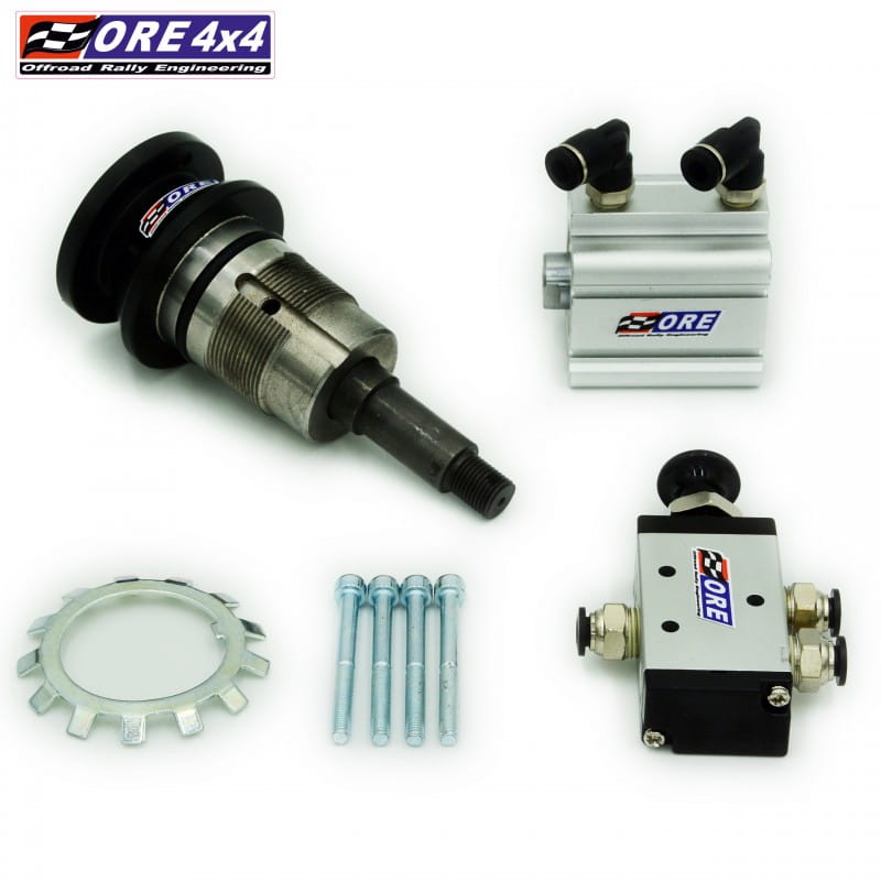 Zestaw ten pozwala zastąpić sterowany podciśnieniowo mechanizm załączania blokady tylnego mostu mechanizmem z siłownikiem pneumatycznym. Do sterowania potrzebny jest kompresor do blokad ARB, lub kompresor zawieszenia który pompuje min. 5atm. Montaż polega na wymianie fabrycznego podciśnieniowego mechanizmu na mechanizm z siłownikiem pneumatycznym. W skład zestawu wchodzi; przesuwka (cały mechanizm) blokady z siłownikiem pneumatycznym, oring uszczelniający, podkładka koronkowa oraz zawór manualny sterujący załączaniem blokady do którego należy doprowadzić ciśnienie z kompresora. Montaż wymaga rozebrania tylnego mostu. Wersja z zaworem manualnym jest dedykowana do aut rajdowych.