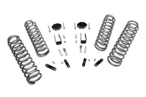 Rough Country 2,5" Suspension Lift Kit do Jeepa Wrangler JK 2-Door to solidny i uniwersalny zestaw zawieszenia, który łączy poprawę osiągów w terenie z zachowaniem komfortu jazdy na co dzień. Dzięki trwałej konstrukcji, łatwemu montażowi i możliwości wyboru amortyzatorów, jest to jedna z najczęściej wybieranych modyfikacji do Wranglerów JK używanych zarówno rekreacyjnie, jak i w cięższym off-roadzie.